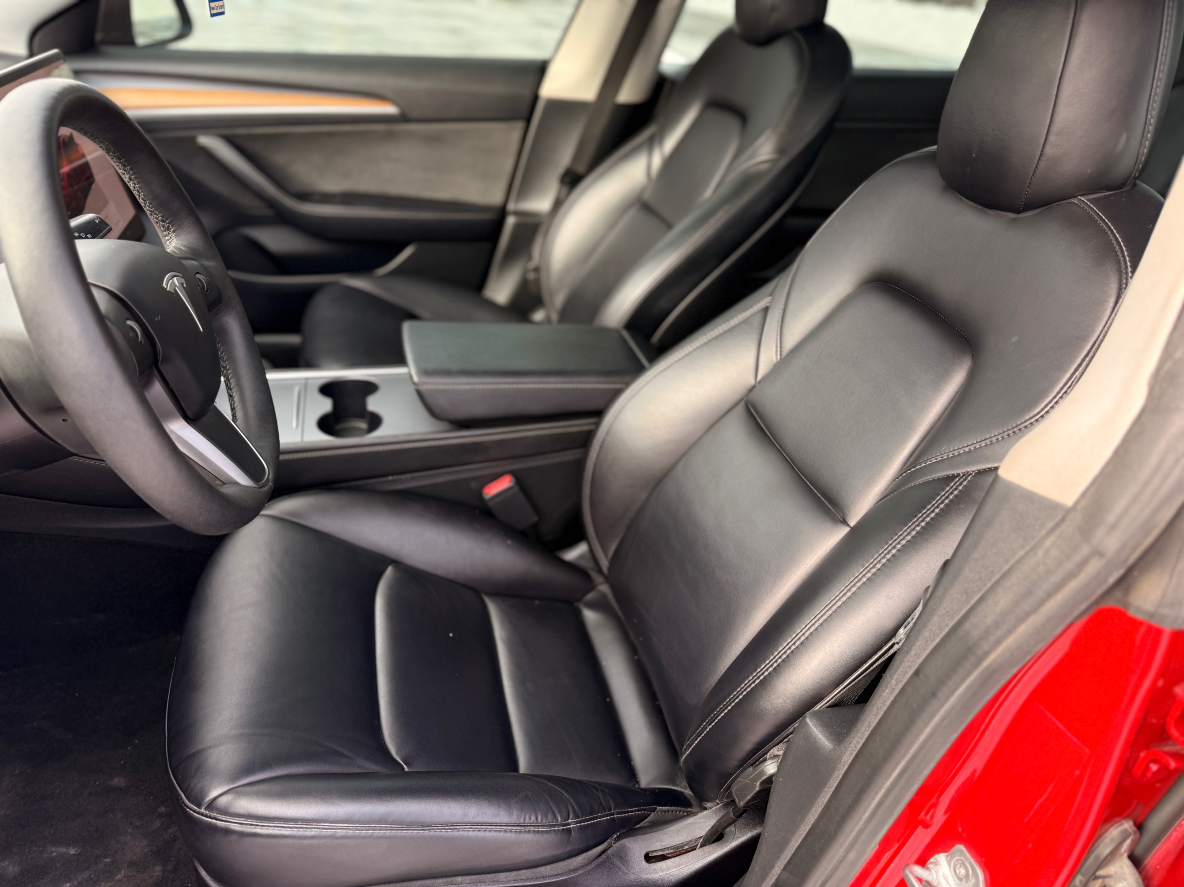 • Premium black interior with Tesla’s minimalist design language