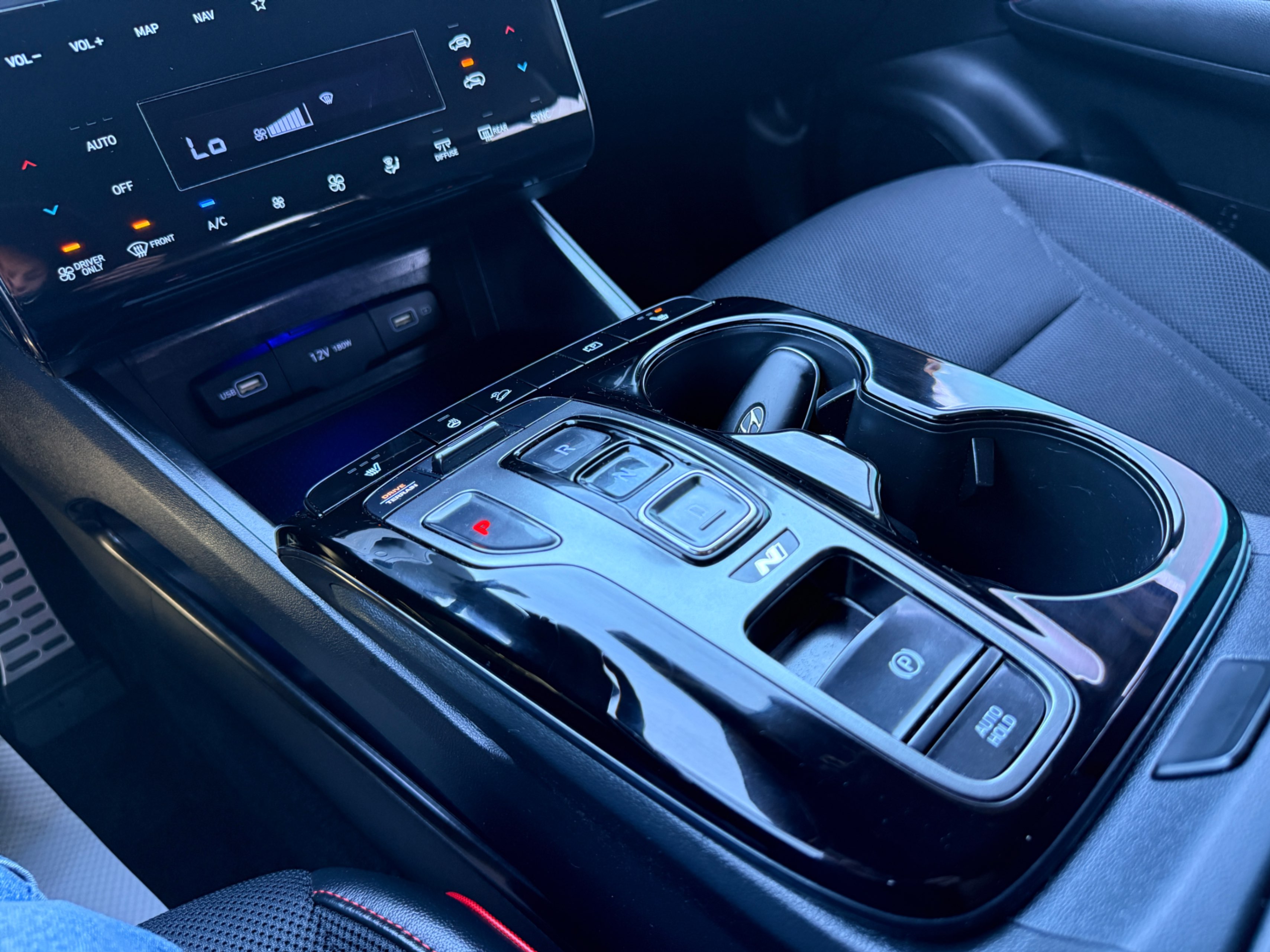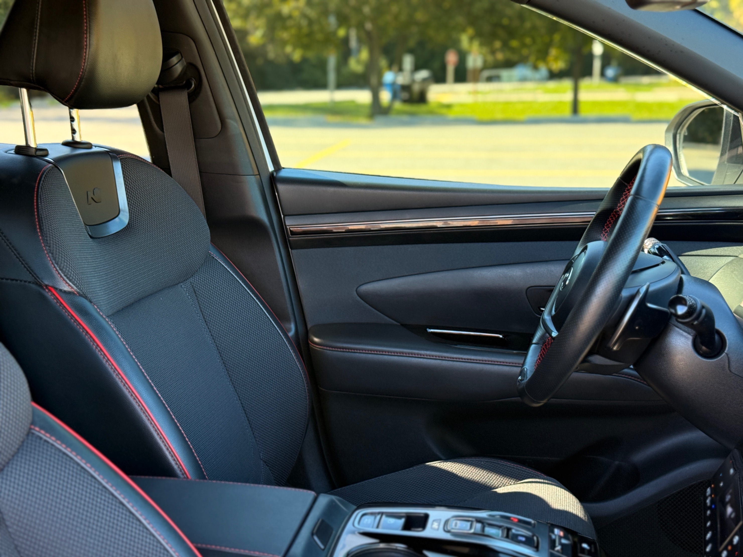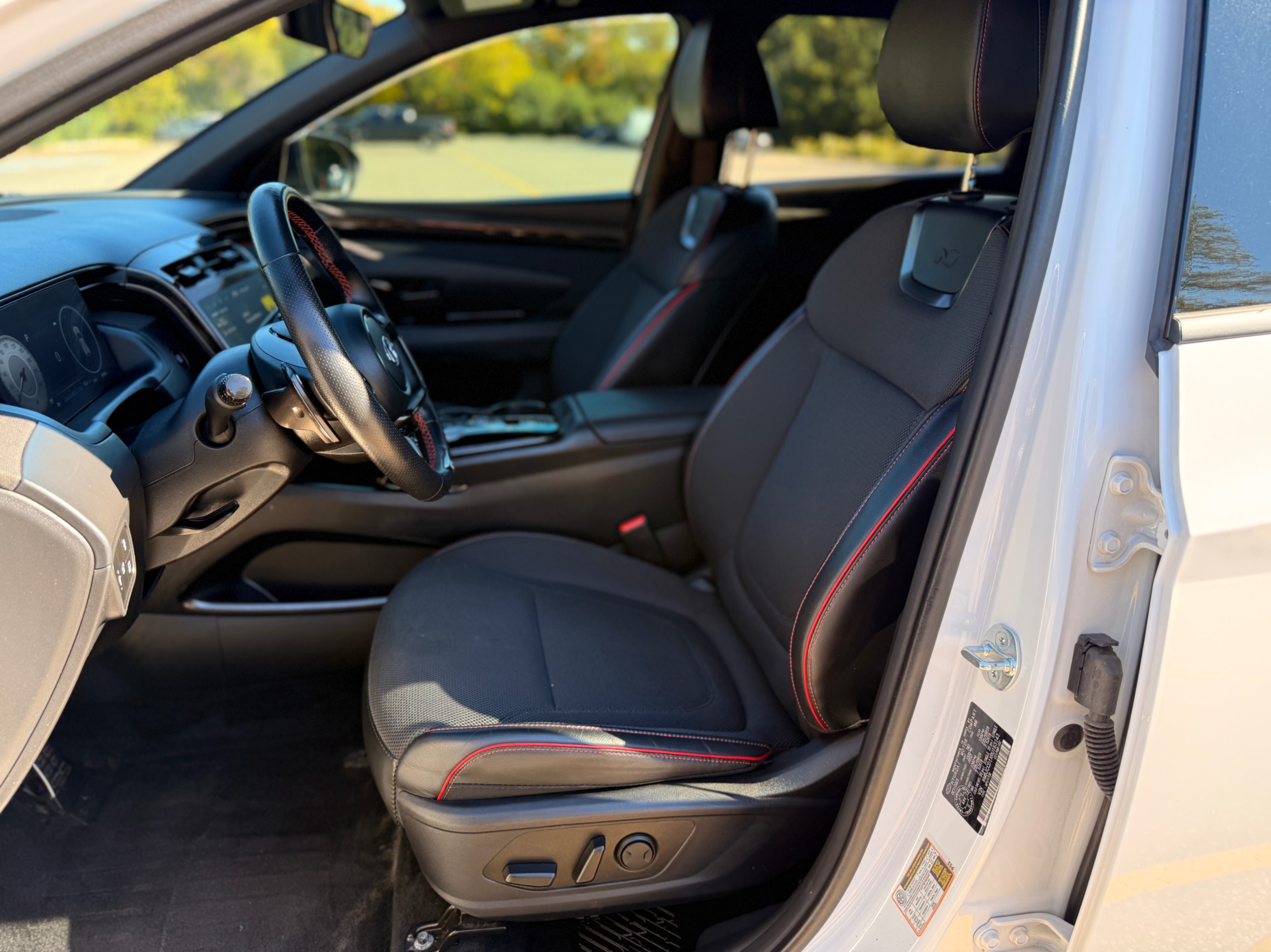 • N Line sport seats with leather and cloth combination, red contrast stitching